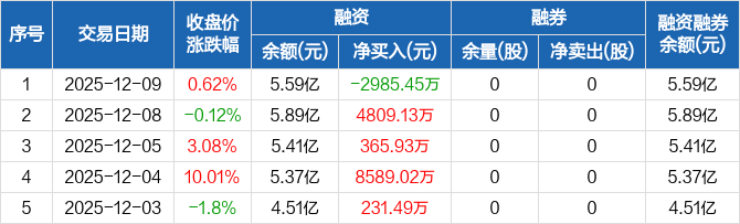 巨轮智能:融资净偿还2985.45万元,融资余额5.59亿元(12-09)