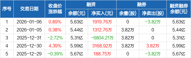 巨轮智能:融资净买入1919.76万元,融资余额5.63亿元(01-06)