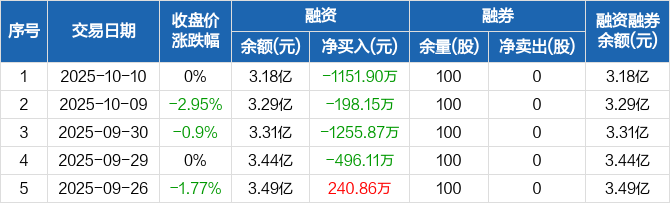 丽江股份:连续4日融资净偿还累计3102.02万元(10-10)