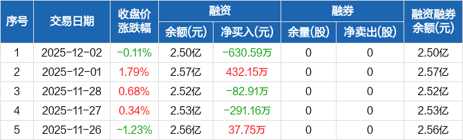 丽江股份:融资净偿还630.59万元,融资余额2.5亿元(12-02)