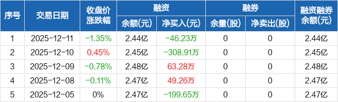 丽江股份:融资净偿还46.23万元,融资余额2.44亿元(12-11)