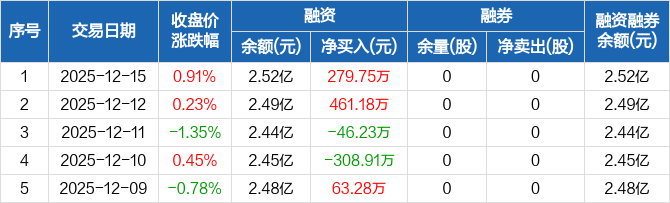 丽江股份:融资净买入279.75万元,融资余额2.52亿元(12-15)