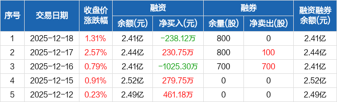丽江股份:融资净偿还238.12万元,融资余额2.41亿元(12-18)