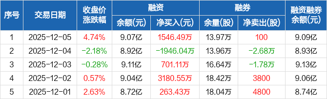 联创电子:融资净买入1546.49万元,融资余额9.07亿元(12-05)