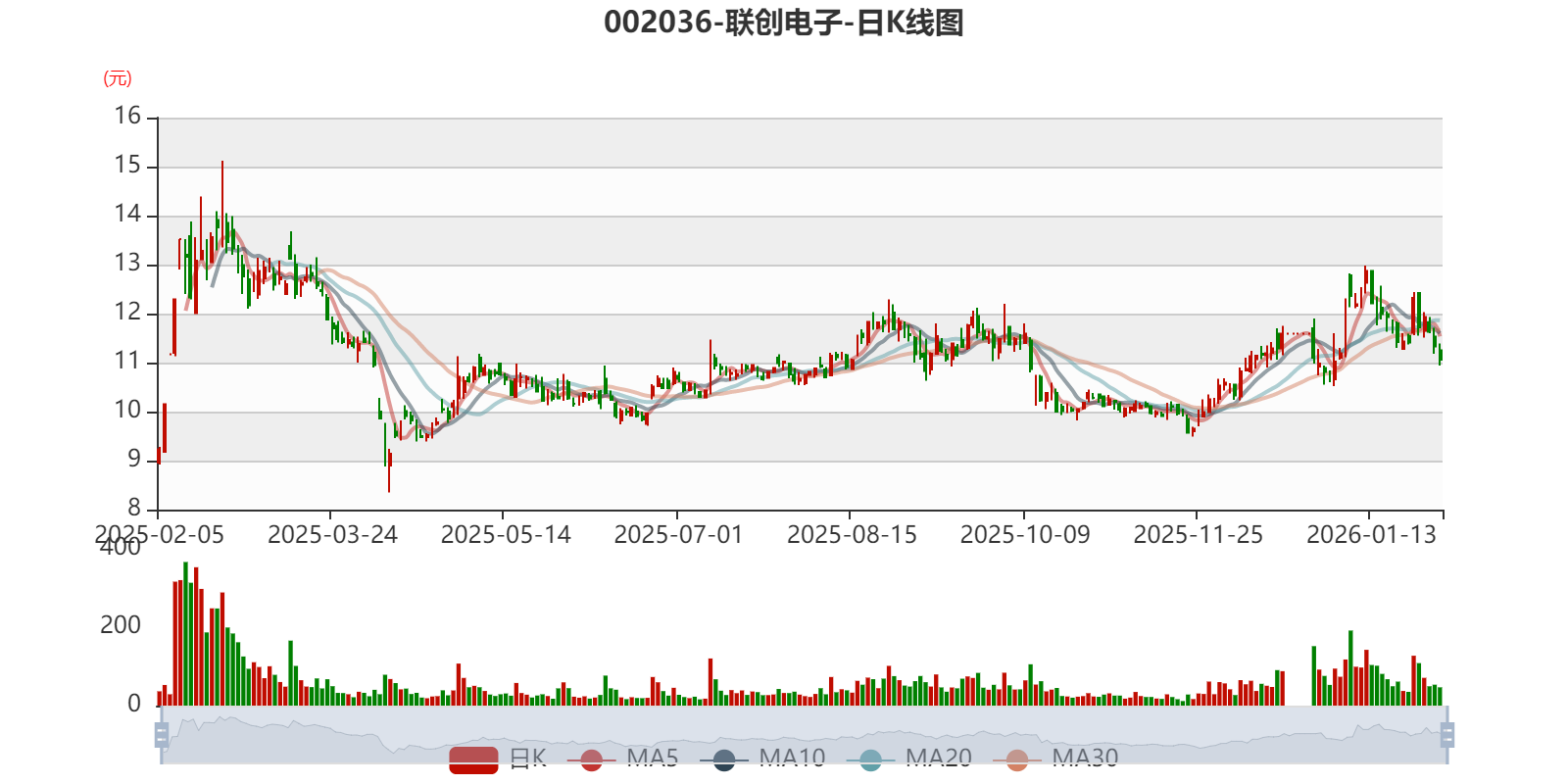 中证智能财讯联创电子(002036)1月30日晚间披露2025年度业绩预告,预计2025年实现营业收入70亿元至90亿元;归母净利润亏损5.8亿元至8.6亿元,上年同期亏损5.53亿元;扣非净利润亏损6.01亿元至8.91亿元,上年同期亏损6.1亿元;基本每股收益-0.5482元/股至-0.8128元/股。以最新收盘价计算,市净率(LF)约5.44倍,市销率(TTM)约1.46倍。