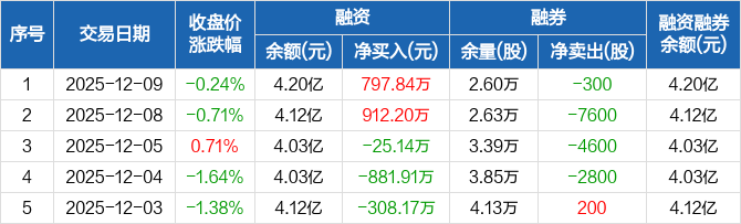 华孚时尚:融资净买入797.84万元,融资余额4.2亿元(12-09)