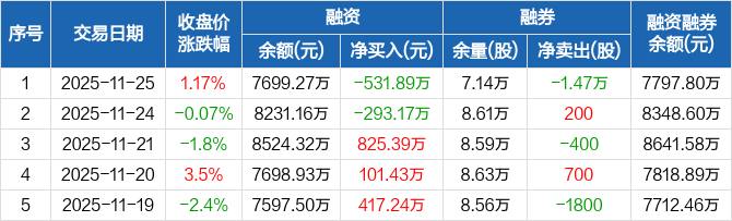 兔宝宝:融资净偿还531.89万元,融资余额7699.27万元(11-25)