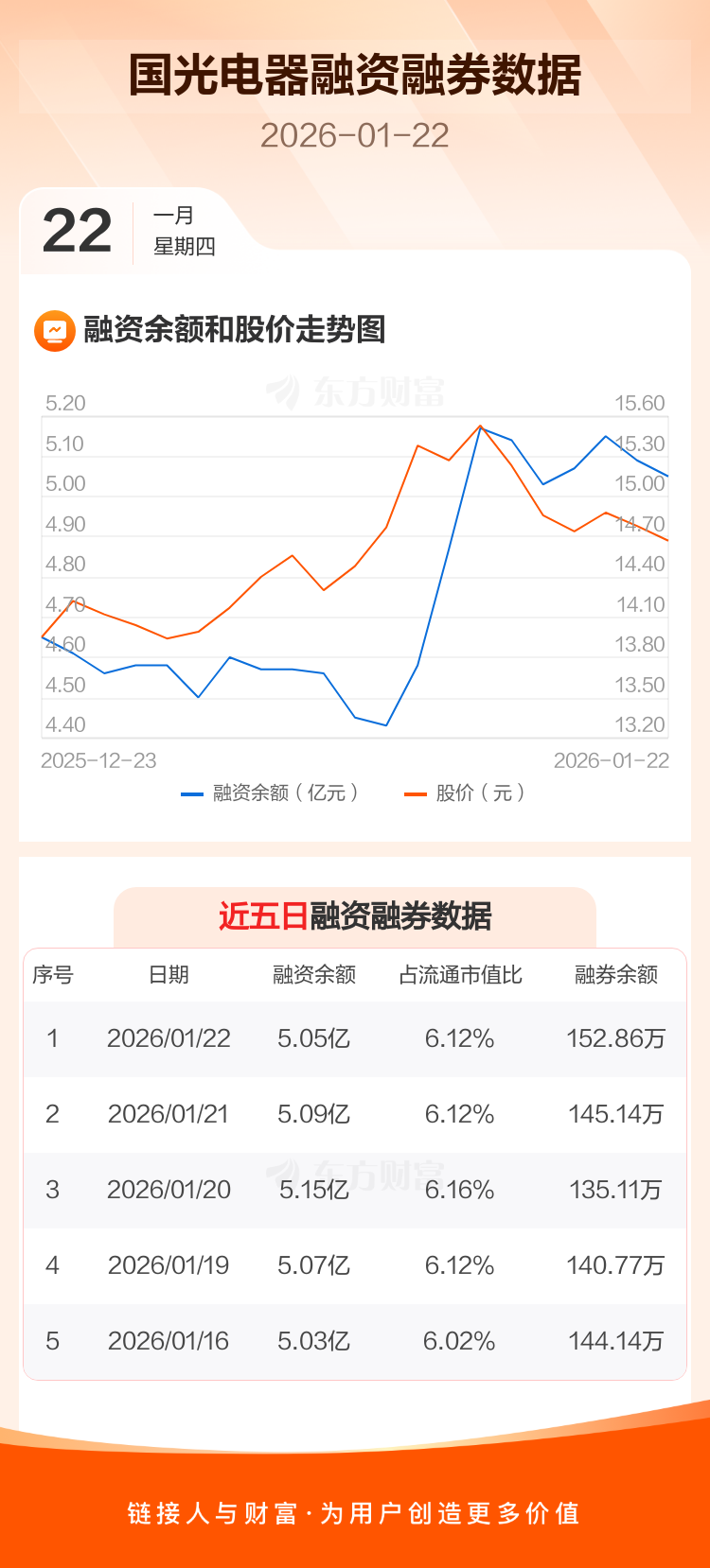 交易所最新数据显示,国光电器于2026年1月22日获融资买入2433.76万元,融资偿还2828.70万元,当日融资净偿还394.93万元。目前,该股融资余额5.05亿,占流通市值比例为6.12%。