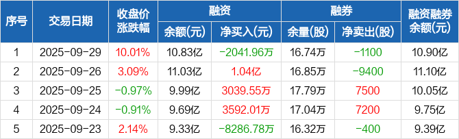 宁波华翔:融资净偿还2041.96万元,融资余额10.83亿元(09-29)