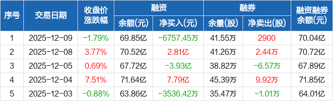 三花智控:融资净偿还6757.45万元,融资余额69.85亿元(12-09)