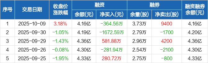 云南能投:融资净偿还364.56万元,融资余额4.16亿元(10-09)