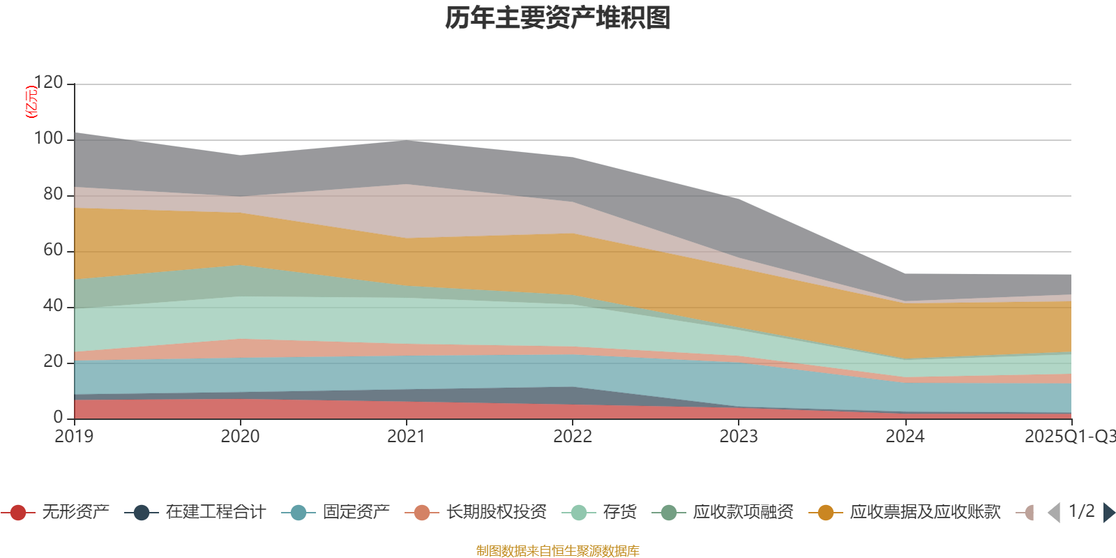 资产重大变化方面,截至2025年三季度末,公司货币资金较上年末增加205%,占公司总资产比重上升3.17个百分点;应收票据及应收账款较上年末减少8.63%,占公司总资产比重下降3.09个百分点;其他非流动金融资产较上年末减少93.63%,占公司总资产比重下降2.89个百分点;长期股权投资较上年末增加64.9%,占公司总资产比重上升2.61个百分点。