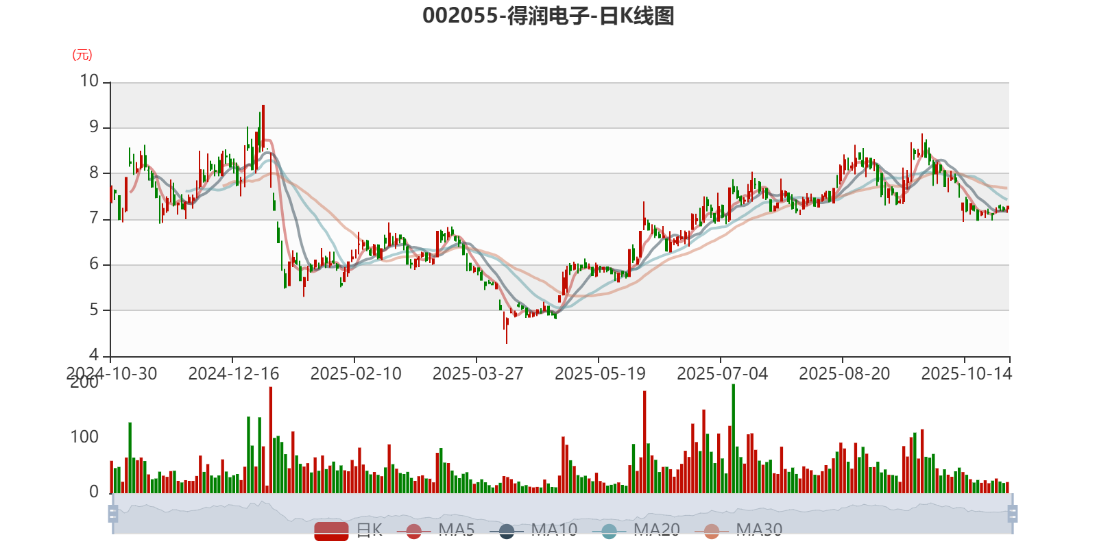 以10月29日收盘价计算,得润电子目前市盈率(TTM)约为-4.29倍,市净率(LF)约3.08倍,市销率(TTM)约0.96倍。