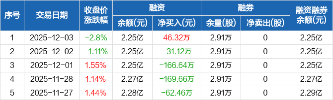 得润电子:融资净买入46.32万元,融资余额2.25亿元(12-03)