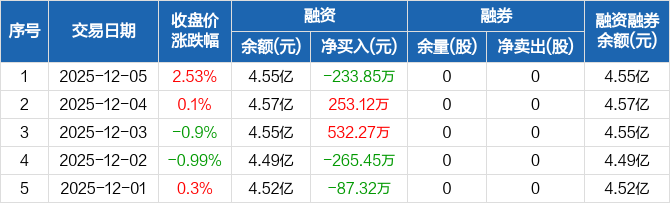 中钢天源:融资净偿还233.85万元,融资余额4.55亿元(12-05)