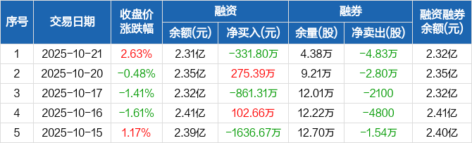 浙江交科:融资净偿还331.8万元,融资余额2.31亿元(10-21)