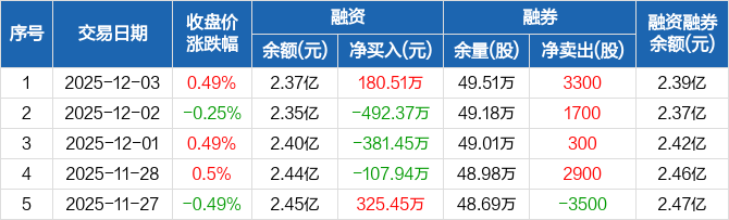 浙江交科:融资净买入180.51万元,融资余额2.37亿元(12-03)