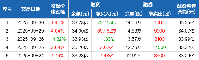 国轩高科:融资净偿还7252.5万元,融资余额33.28亿元(09-30)