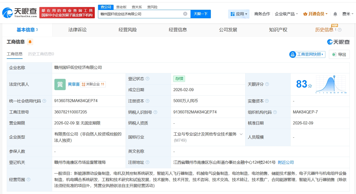 国轩高科在赣州成立低空经济公司
