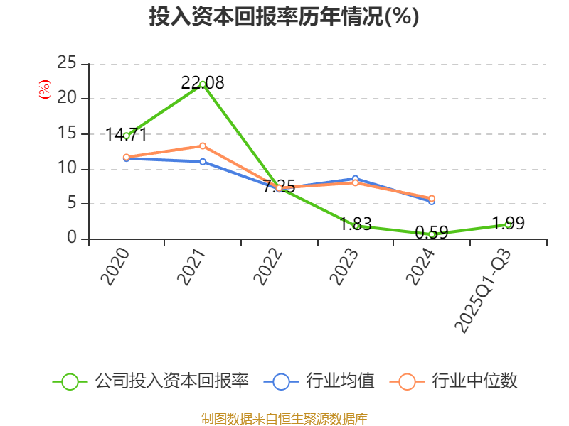 盈利能力方面, 2025年前三季度公司加权平均净资产收益率为3.56%,同比上升1.98个百分点。公司2025年前三季度投入资本回报率为1.99%,较上年同期上升1.49个百分点。