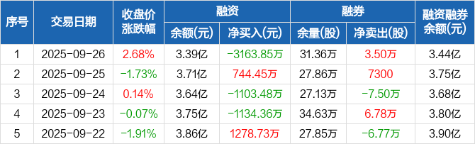 太阳纸业:融资净偿还3163.85万元,融资余额3.39亿元(09-26)