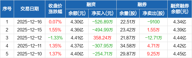 太阳纸业:融资净偿还526.89万元,融资余额4.3亿元(12-16)