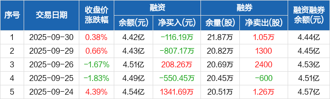苏州固锝:融资净偿还116.19万元,融资余额4.42亿元(09-30)