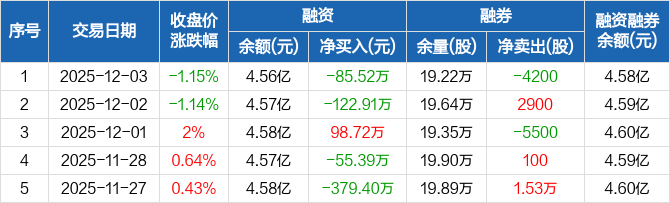 苏州固锝:融资净偿还85.52万元,融资余额4.56亿元(12-03)