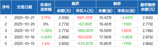 金螳螂:融资净买入1601.31万元,融资余额2.93亿元(10-21)
