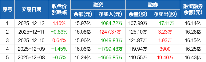 万丰奥威:融资净偿还1084.72万元,融资余额15.97亿元(12-12)