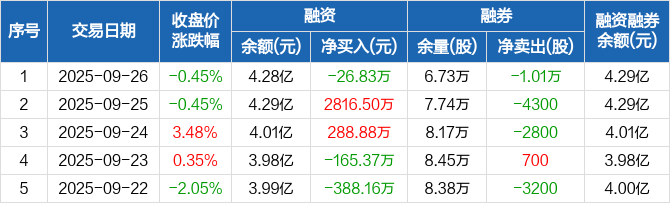 江苏国泰:融资净偿还26.83万元,融资余额4.28亿元(09-26)