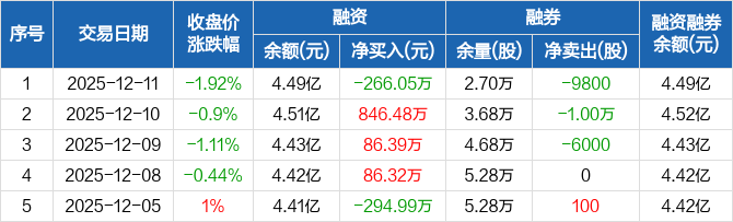 江苏国泰:融资净偿还266.05万元,融资余额4.49亿元(12-11)