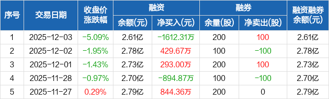 生意宝:融资净偿还1612.31万元,融资余额2.61亿元(12-03)