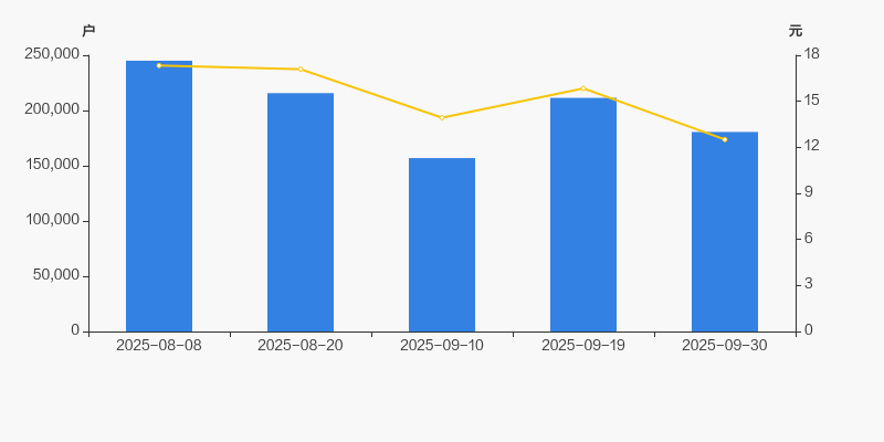 2025年8月8日至今,公司股东户数显著下降,区间跌幅为26.31%。2025年8月8日至2025年9月30日区间股价下降27.81%。