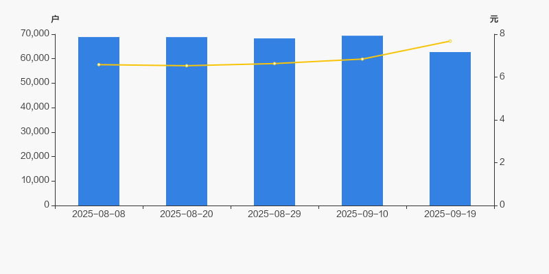 2025年8月8日至今,公司股东户数有所下降,区间跌幅为8.93%。2025年8月8日至2025年9月19日区间股价上涨16.72%。