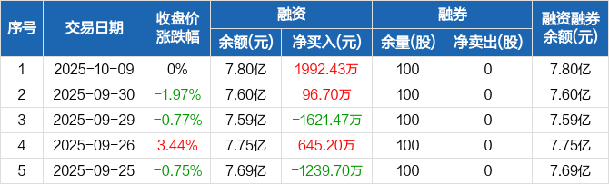 恒宝股份:融资净买入1992.43万元,融资余额7.8亿元(10-09)