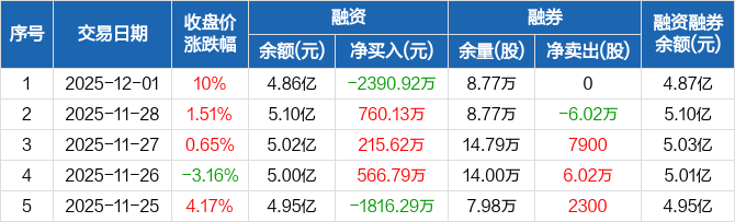 沧州明珠:融资净偿还2390.92万元,融资余额4.86亿元(12-01)