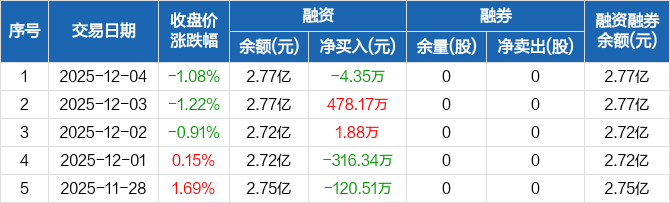三变科技:融资净偿还4.35万元,融资余额2.77亿元(12-04)