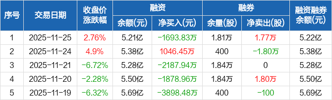 三维通信:融资净偿还1693.83万元,融资余额5.21亿元(11-25)