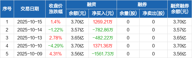 康强电子:融资净买入1269.21万元,融资余额3.7亿元(10-15)