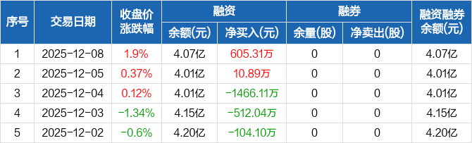 康强电子:融资净买入605.31万元,融资余额4.07亿元(12-08)