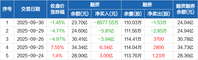 沃尔核材:连续3日融资净偿还累计10.64亿元(09-30)