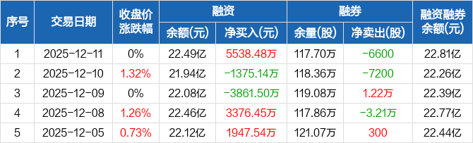 沃尔核材:融资净买入5538.48万元,融资余额22.49亿元(12-11)