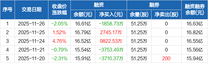 利欧股份:融资净偿还1858.73万元,融资余额16.61亿元(11-26)
