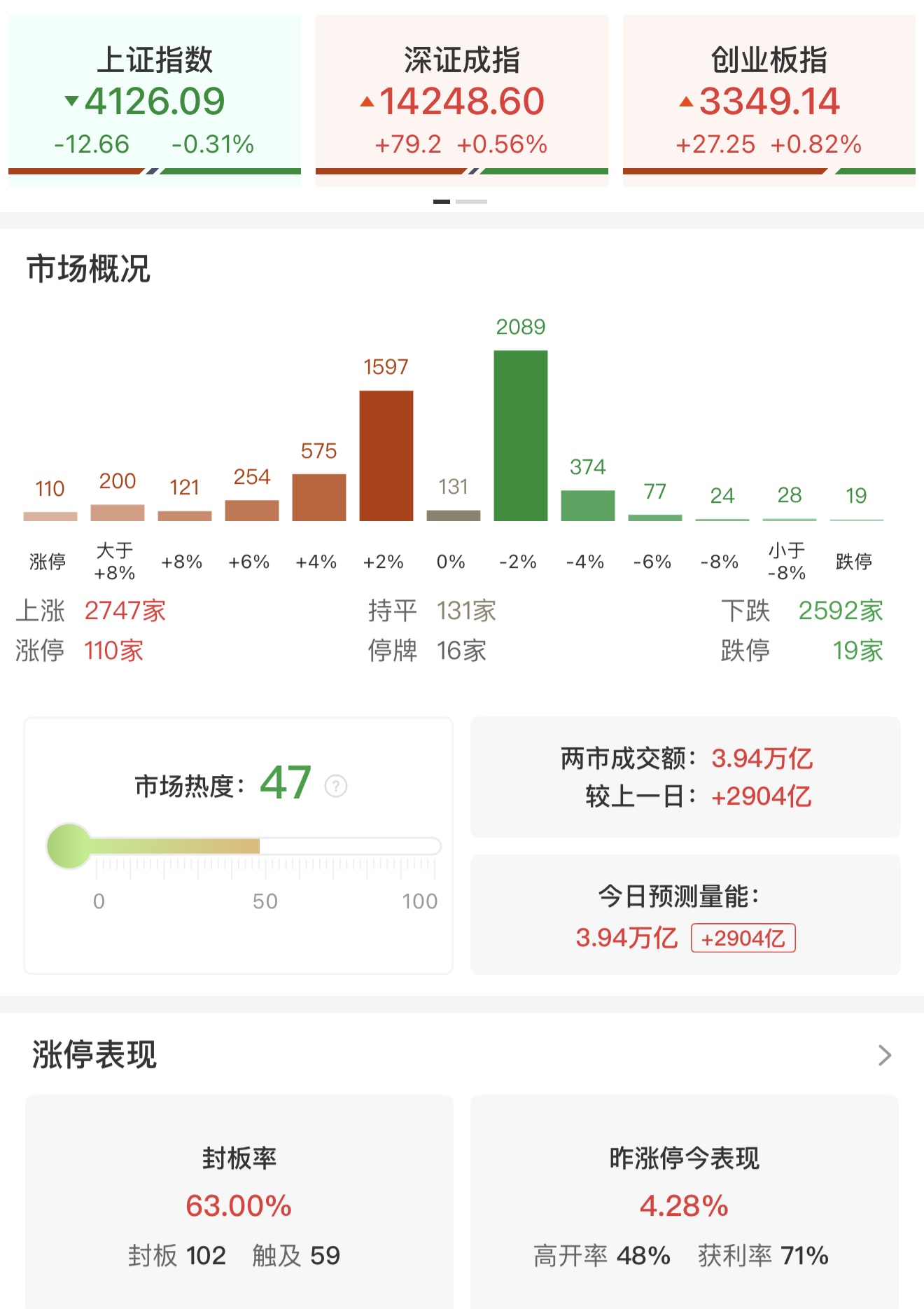 收评:沪指冲高回落跌0.31% 两市成交额近4万亿