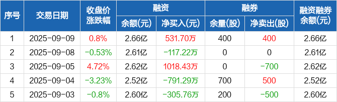 恒星科技:融资净买入531.7万元,融资余额2.66亿元(09-09)
