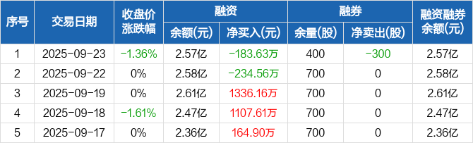 恒星科技:融资净偿还183.63万元,融资余额2.57亿元(09-23)