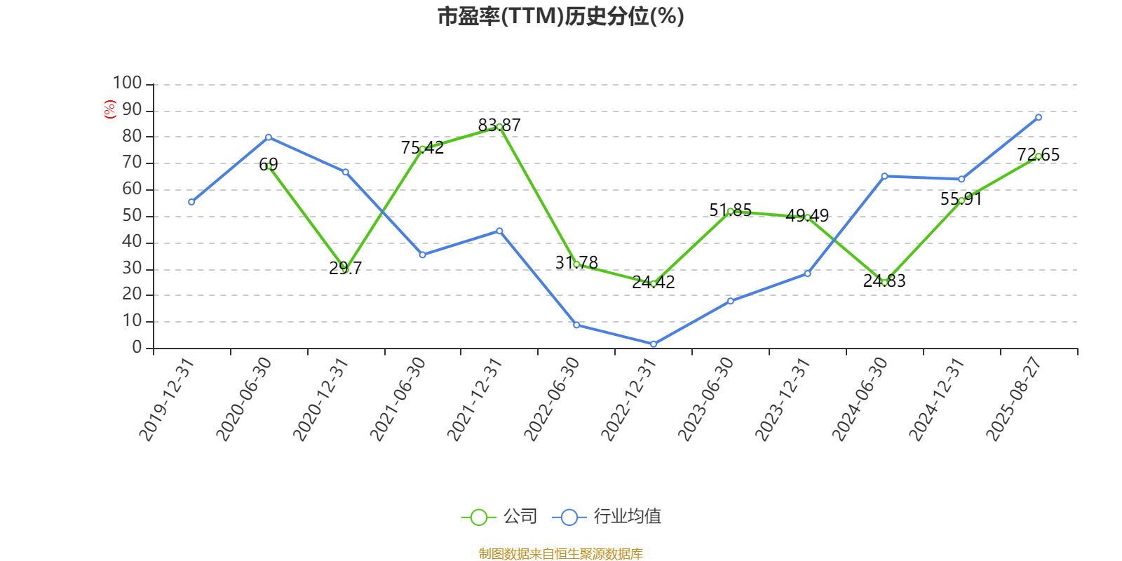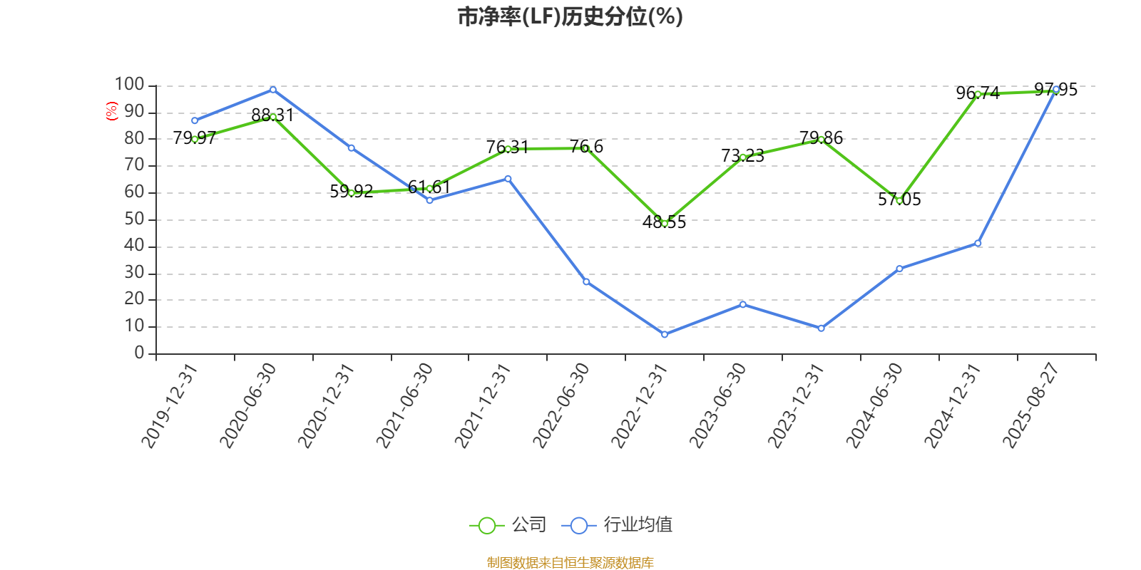 市盈率、市净率为负时,不显示当期分位数,会导致折线图中断。