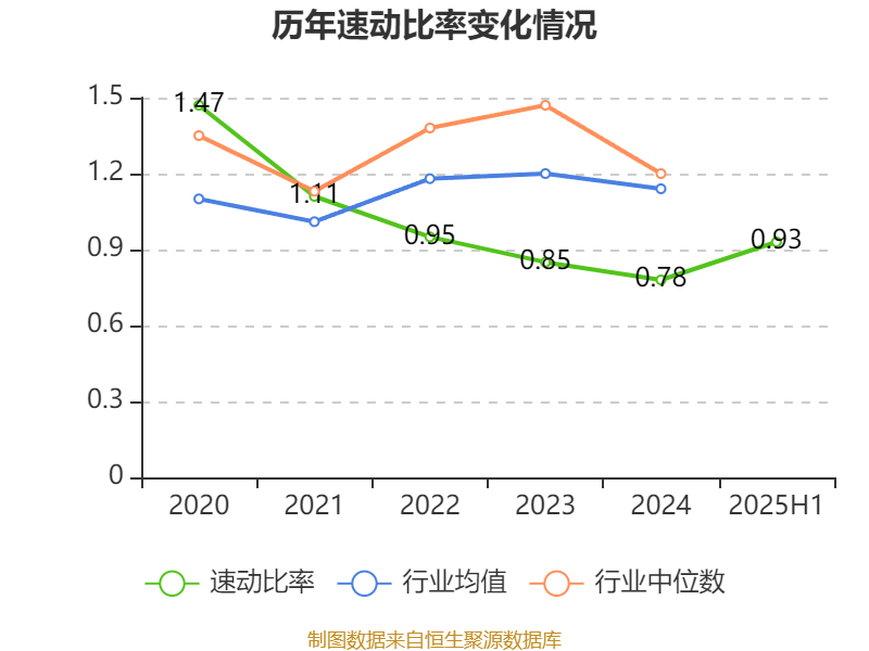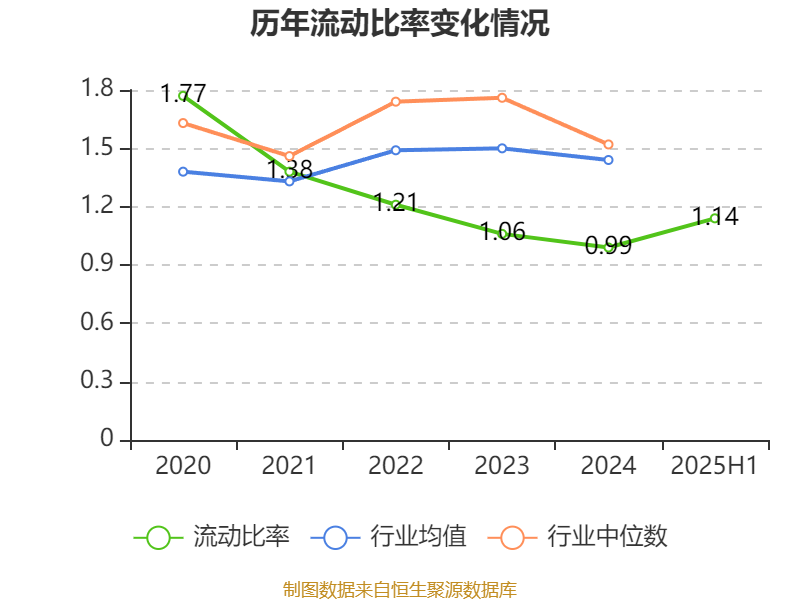 2025年上半年,公司流动比率为1.14,速动比率为0.93。