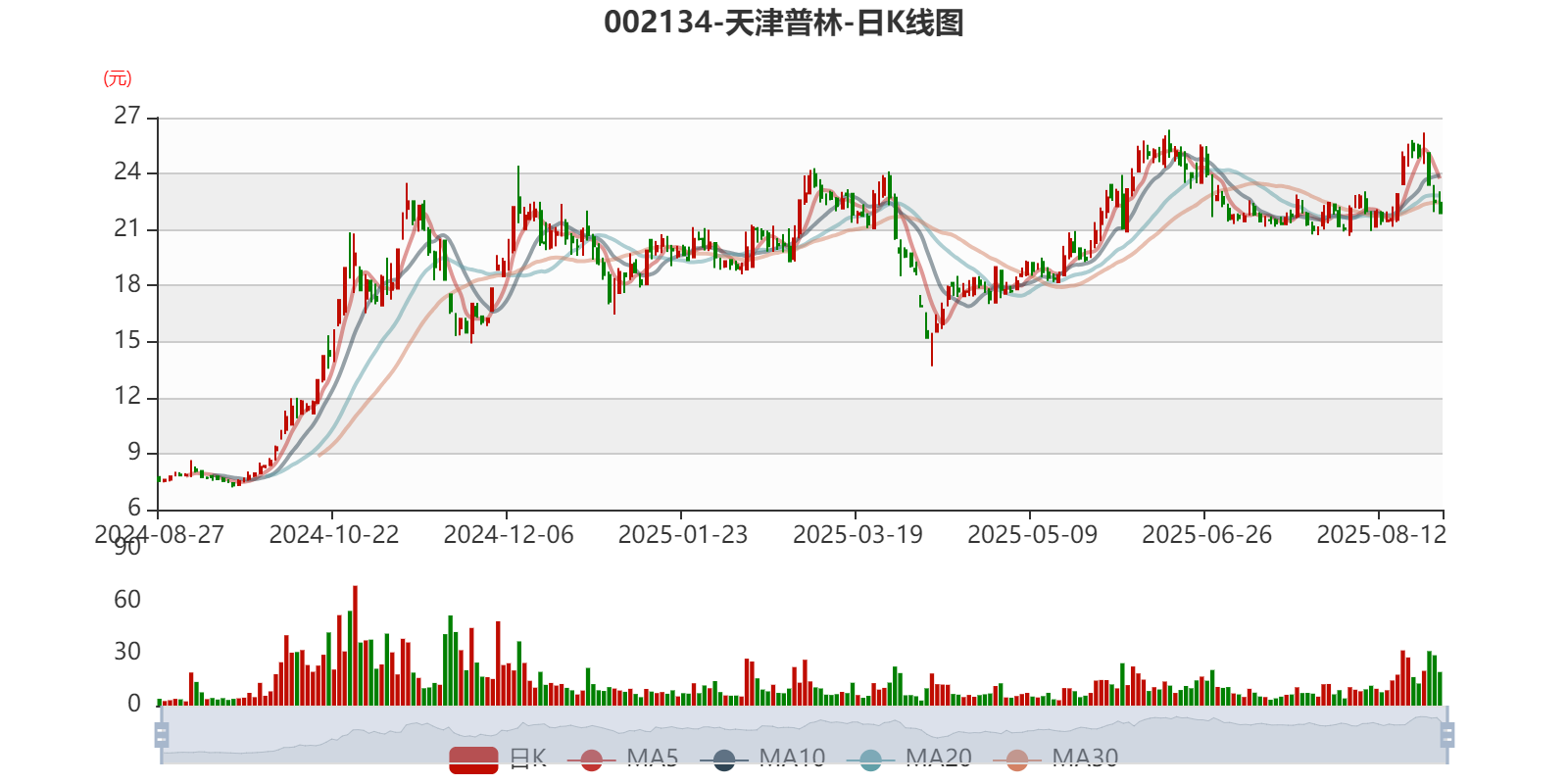 以8月26日收盘价计算,天津普林目前市盈率(TTM)约为277.61倍,市净率(LF)约11.09倍,市销率(TTM)约4.35倍。